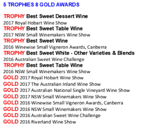 TROPHY – BEST SWEET WINE 2018 Winewise Small Vignerons Awards, Canbera